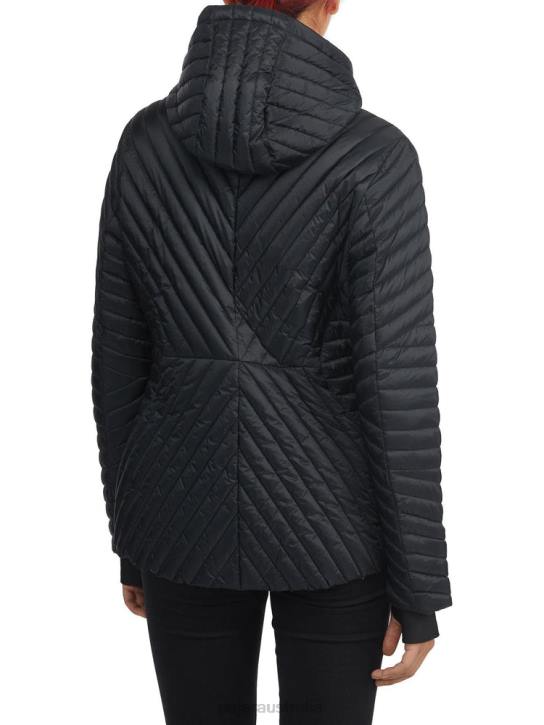 Women's mini chevron quilted lightweight packable 3M Featherless Thinsulate puffer. Exposed zip front closure with hi-lo hem. Equipped with exposed zipper pockets and fixed hood. Jersey knit storm cuffs with thumbhole.*