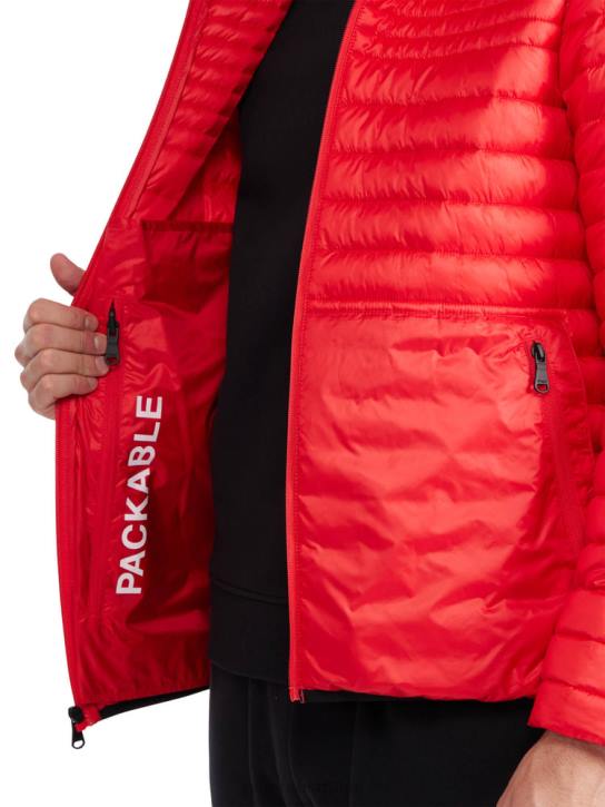 Men's channel quilted lightweight packable puffer. Equippedwith kangaroo zipper pockets. Fixed hood with lycra binding. Core Fit Smooth Poly CireHeat-sealing calendering at back + shiny cire coating finish to repel water + wind penetration Shell: 100% Polyester| Lining: 100% Polyester Synthetic Insulation| Thin, light, & warm down alternative 2 Layer Construction Water Repellent Machine Washable Total Length: 28''*