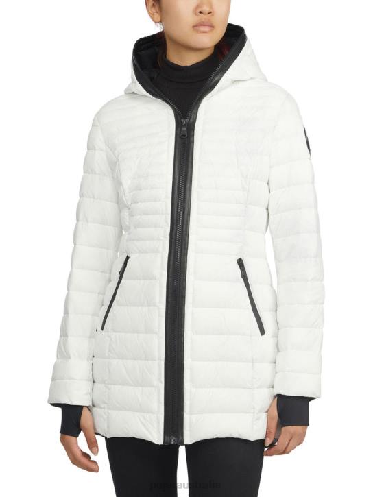 Women's channel quilted lightweight packable 3M Featherless Thinsulate puffer. PU trim zipper frame. Equipped with an exposed zip-to-top closure, zipper pockets with hi-lo hem and fixed hood. Jersey knit storm cuffs with thumbhole.*