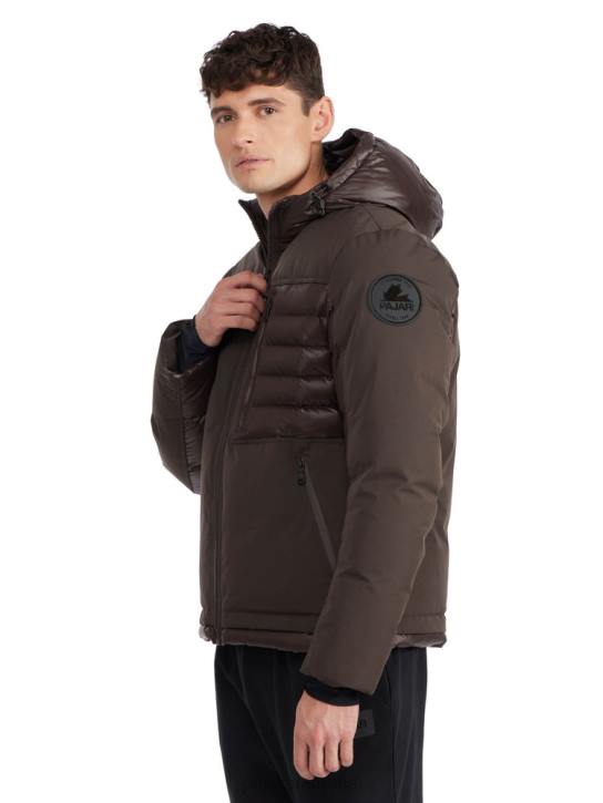 Men's mixed-media channel quilted lightweight downfill jacket. Equipped with fixed hood, exposed zip front closure, zipper chest pocket & bottom zipper angled pockets. Adjustable bungee cords at hood & bottom hem. Sleek jersey knit storm cuffs. Core Fit Versatile Softshell + Smooth Nylon CireThin laminate membrane at back to prevent water + wind penetration w/breathability Shell:70%Polyester/30%Nylon|Lining:100%Polyester | Combo: 100% Nylon 80 20 Duck Down | US2000 Grade 4 Layer Construction Water Repellent Machine Washable Total Length: 28''*