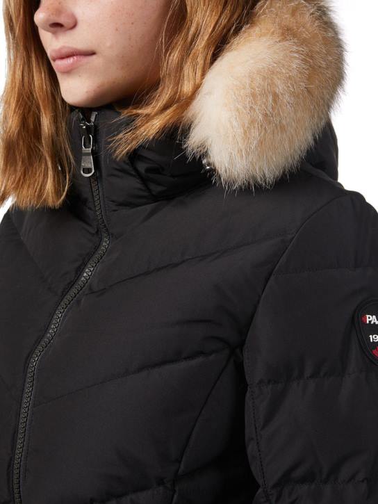 Chevron quilted puffer with detachable hood & fur trim. Featuring side vent zipper detail and zipper pockets and cozy rib knit storm cuffs.*