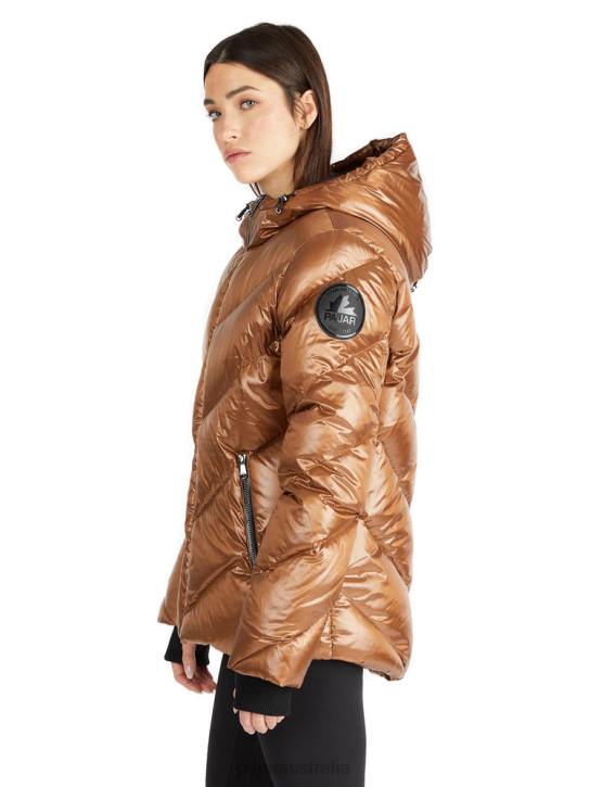 Women's diagonal channel quilted hi-lo hem puffer with fixed hood. Equipped with an exposed front zipper closure and bottom zipper pockets. Cozy rib knit storm cuffs.*