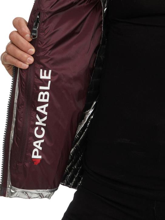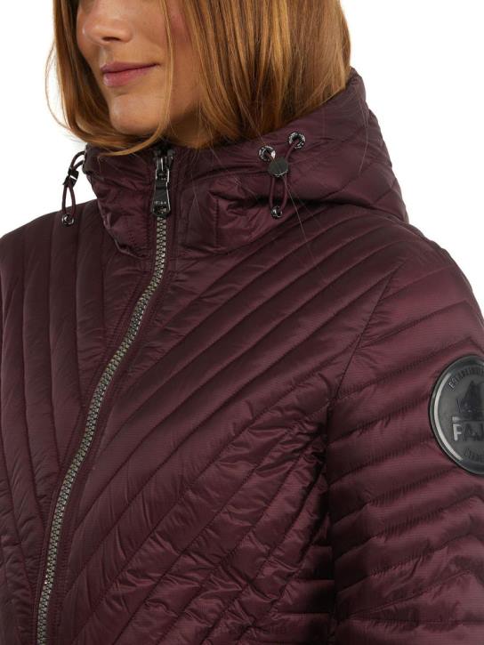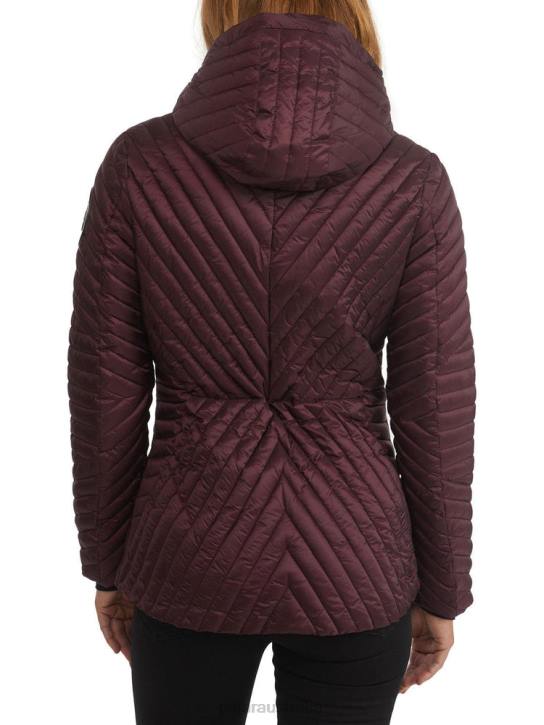 Women's mini chevron quilted lightweight packable 3M Featherless Thinsulate puffer. Exposed zip front closure with hi-lo hem. Equipped with exposed zipper pockets and fixed hood. Jersey knit storm cuffs with thumbhole.*