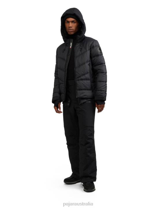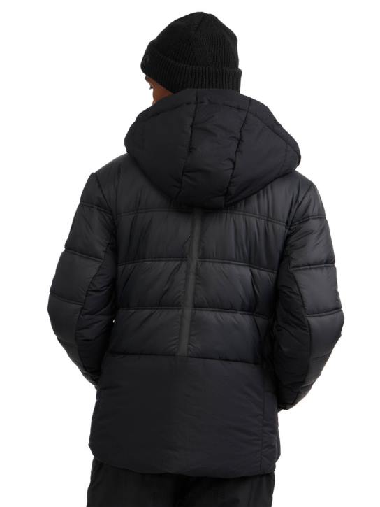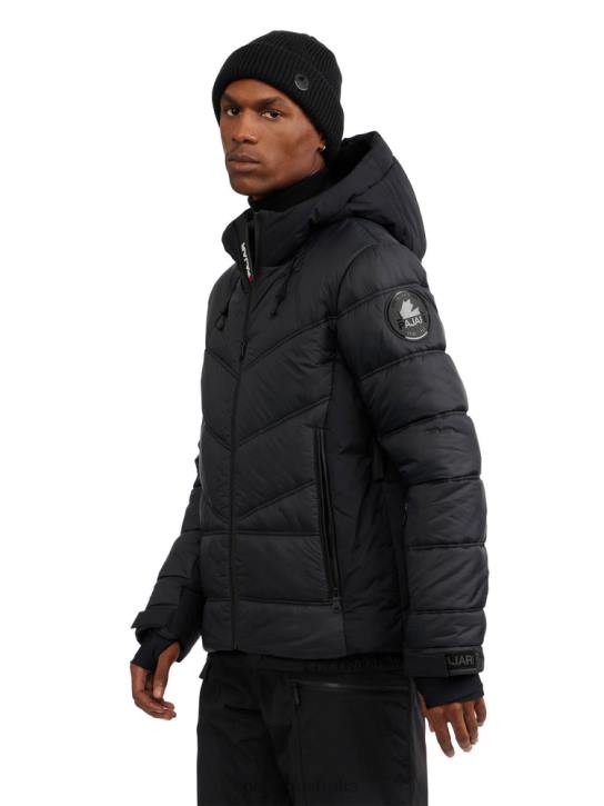 Men's mixed-media ski puffer with fixed hood. Combo fabric side panels. Equipped with exposed aquaguard zip front closure, elongated aquaguard zipper pockets and concealed powder skirt for added protection from wind. Adjustable multi-bungee cords @ hood, Velcro sleeve tabs and ski-pass aquaguard zipper sleeve pocket. Reflective tape @ CB for added visibility. Sleek jersey knit storm cuffs.*