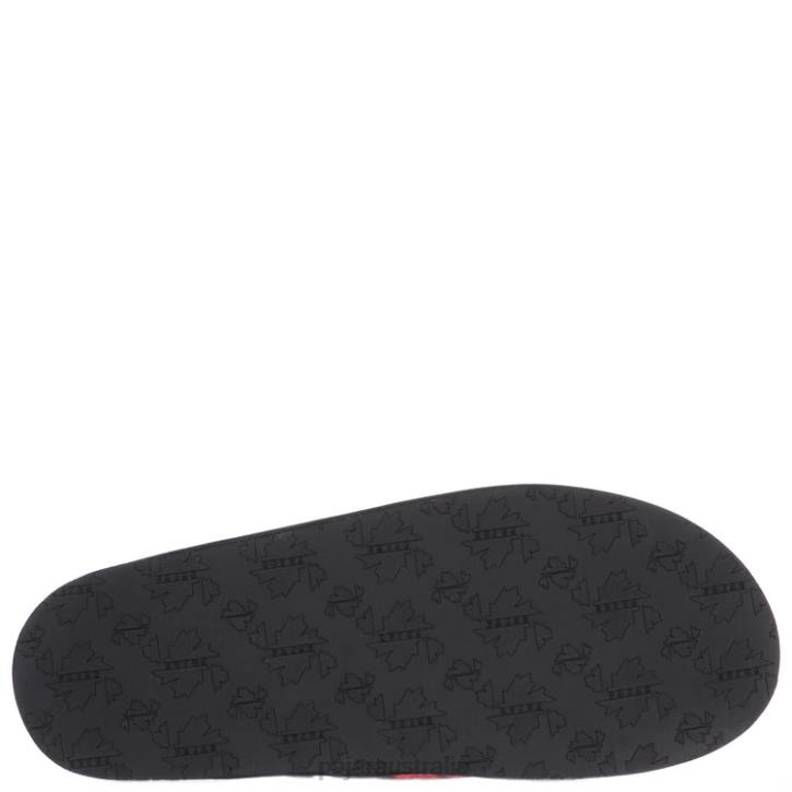 Textile slides with faux fur lining and logo band at vamp in elastic micro suede. Features signature maple leaf rubber sole plate from Pajar Canada for all day indoor / outdoor comfort. *