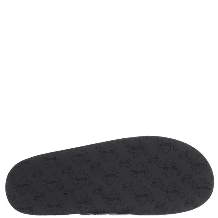 Textile slides with faux fur lining and logo band at vamp in elastic micro suede. Features signature maple leaf rubber sole plate from Pajar Canada for all day indoor / outdoor comfort. *