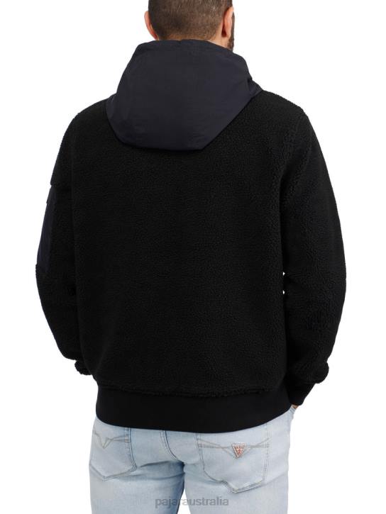 Men's mixed-media sherpa hoodie designed to have the perfect relaxed fit that skims the body. Combo fabric hood, kangaroo pocket, and sleeve patch pocket. Aquaguard zipper pocket at sleeve and above kangaroo patch pocket. Hood drawcord with rubber dipped ends to prevent fraying. Rib cuff and hem. Rubber logo patch at sleeve pocket. Soft cotton jersey lining*